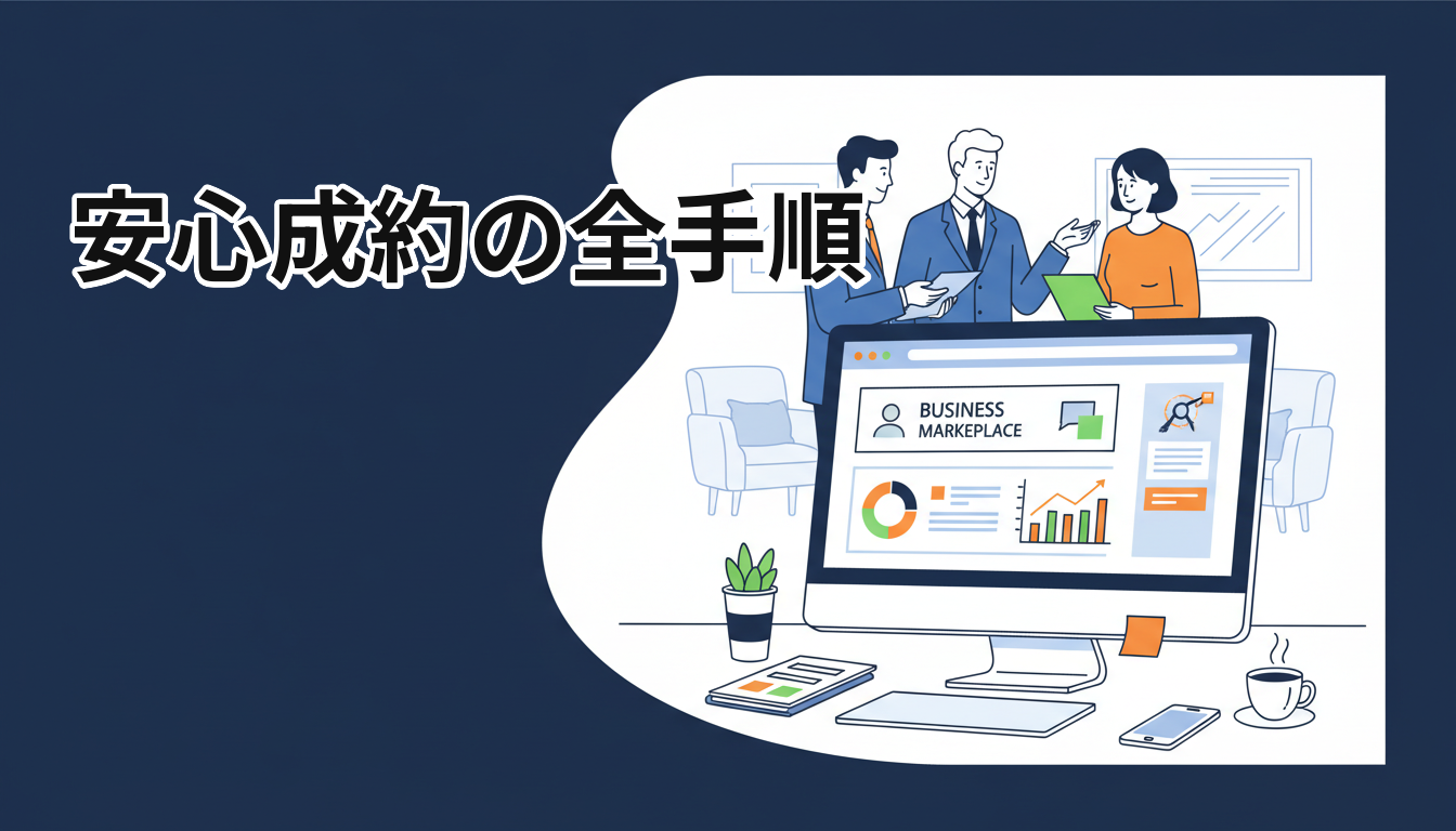 最短フローは「自動査定→出品登録→審査通過→公開→オファー受領→交渉→契約締結(電子契約)→エスクロー入金→移管・検収→着金」です。ラッコM&Aは各フェーズでテンプレや代行があり、工数を減らせます。